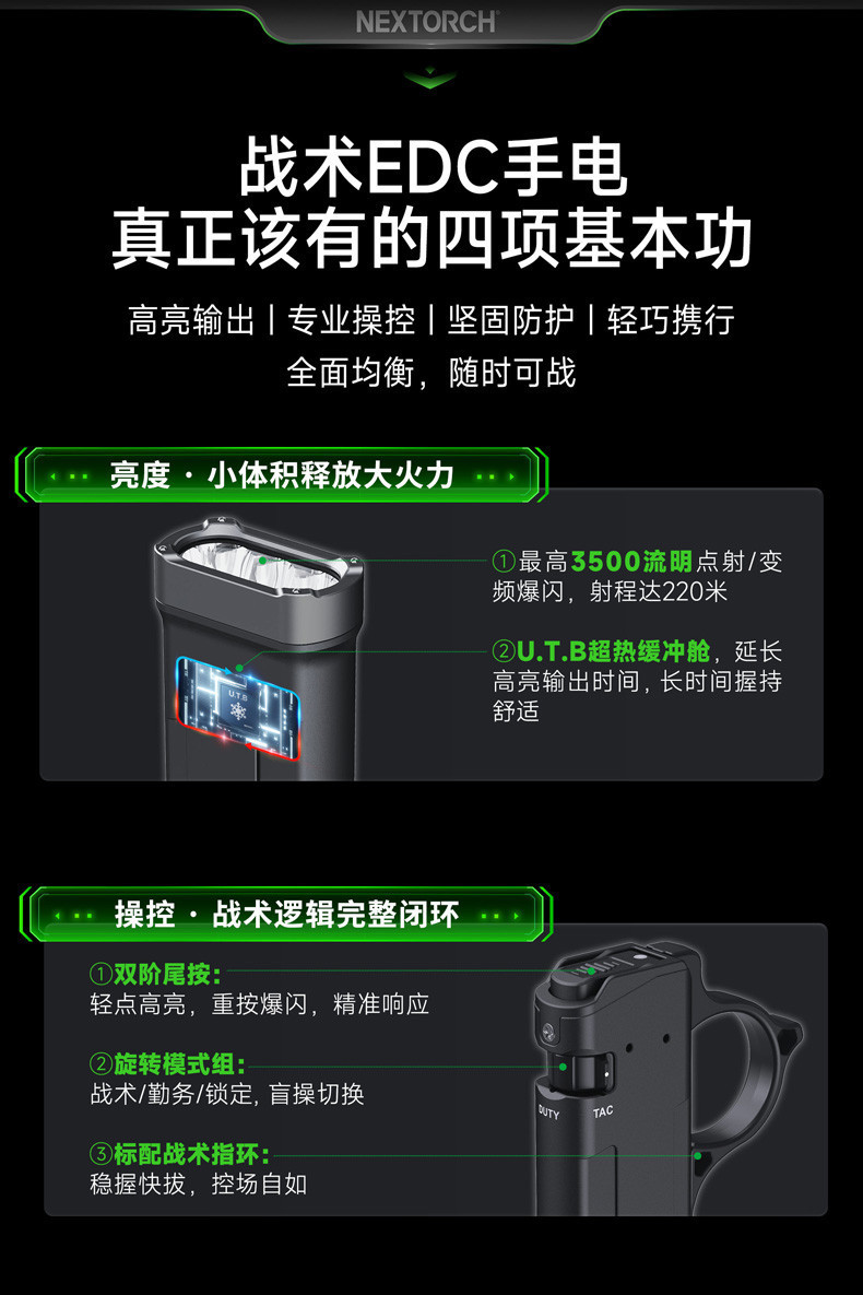 戰術手電筒, 超薄手電筒, EDC手電筒, 3500流明, 警用手電筒, 独家散热技术, 防水手電筒, 超轻量手电, 抗摔手电筒, U.T.B超热缓冲舱技术