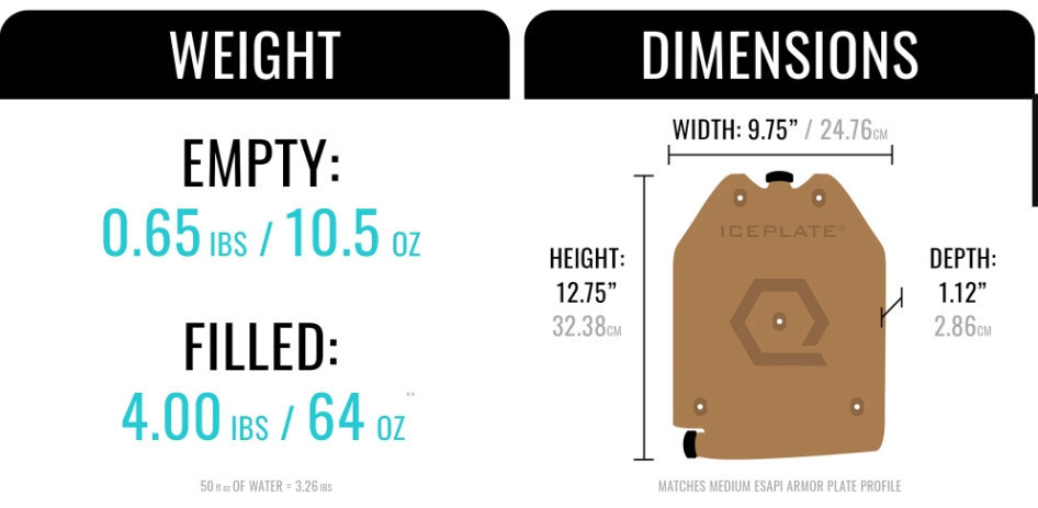 ICEPLATE® Gen 3 是一款高效能硬殼式補水板,其外型尺寸等同於 Medium ESAPI 防彈板(9.5” × 12.5” × 1”)。專為降溫、加熱與補水而設計,可容納 52.4 fl oz(1.5 公升) 的可飲用水,為任何任務與環境提供精準的體溫調節與水分補給。